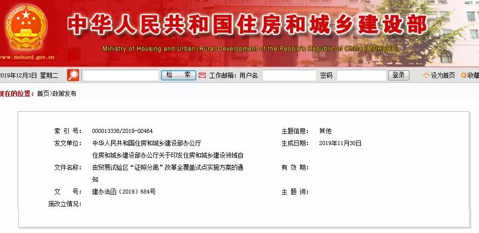 中山建安2019年12月06日讯--为贯彻落实《国务院关于在自由贸易试验区开展“证照分离”改革全覆盖试点的通知》,近日,住房和城乡建设部制定并印发了《住房和城乡建设领域自由贸易试验区“证照分离”改革全覆盖试点实施方案》: